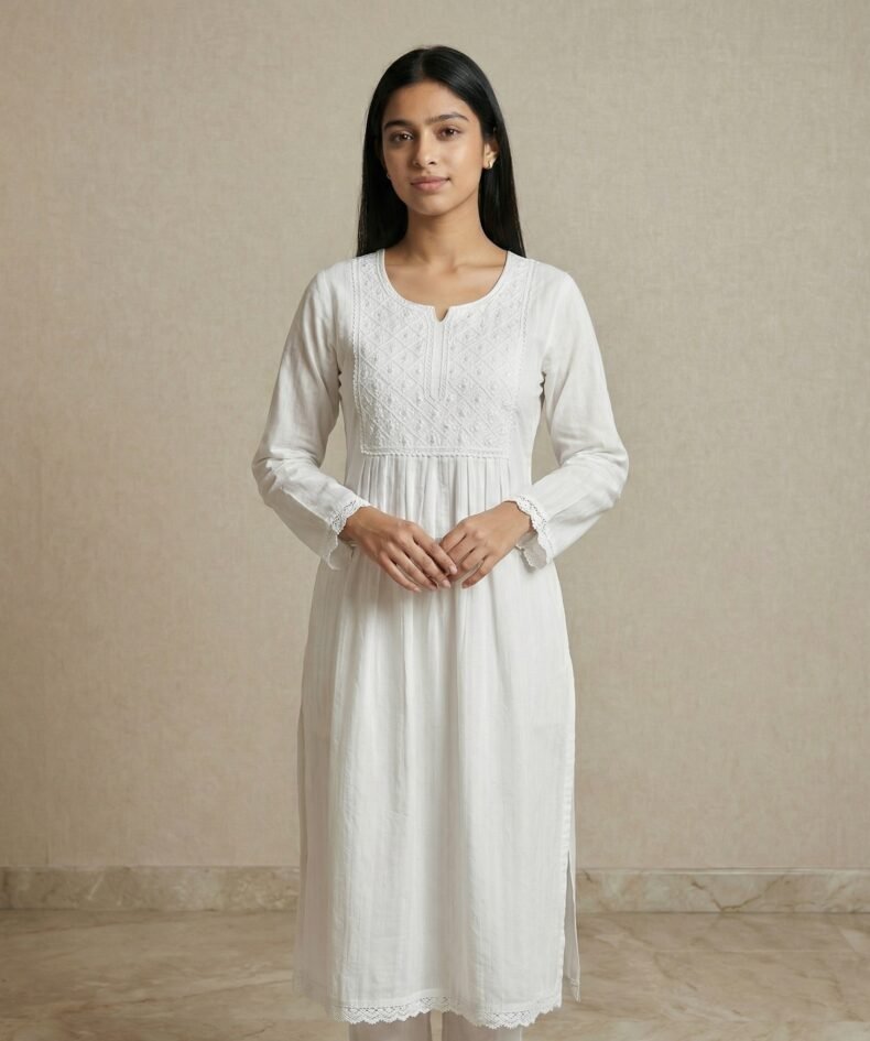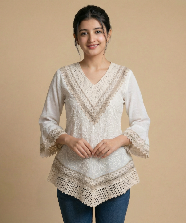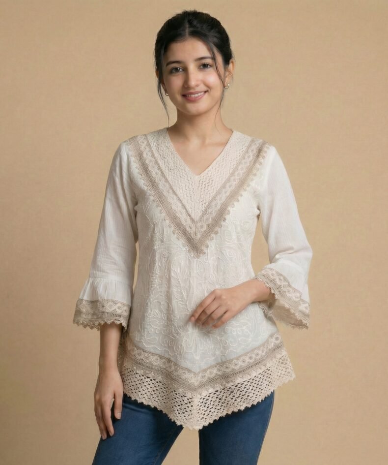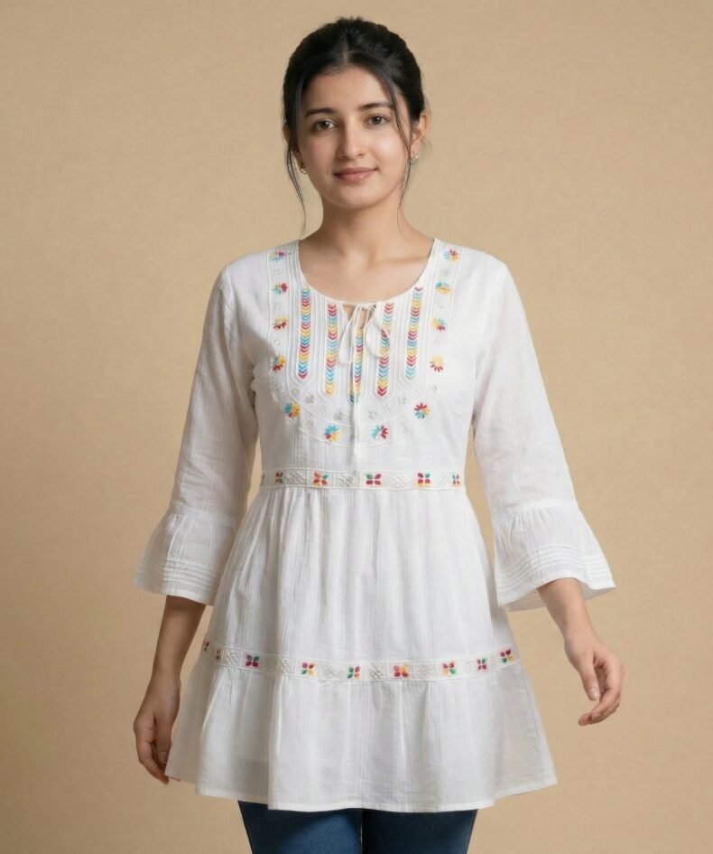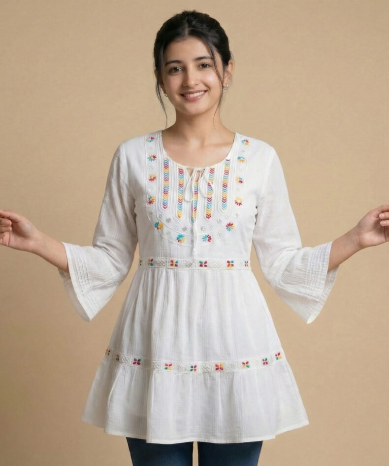 White Embroidered Short Kurti for Women – Soft Cotton
