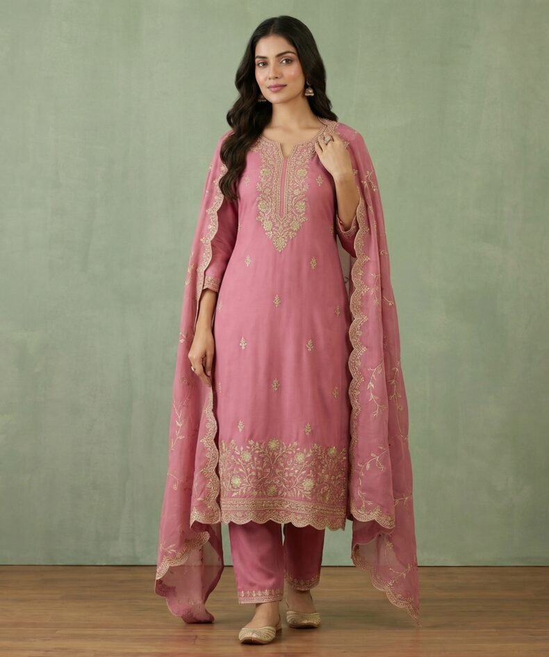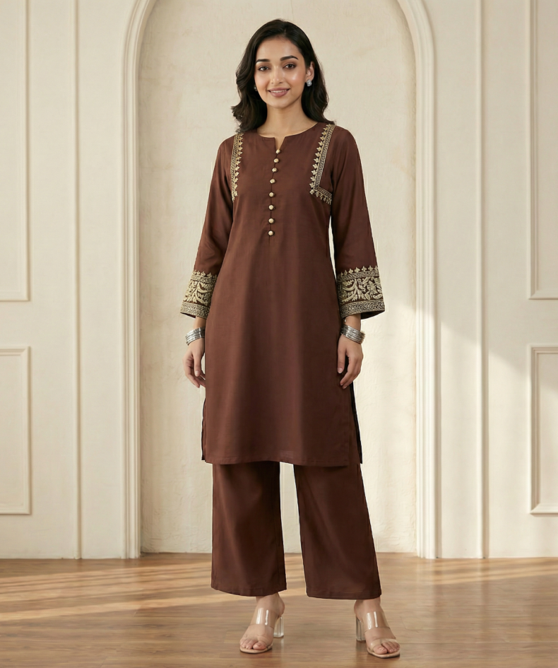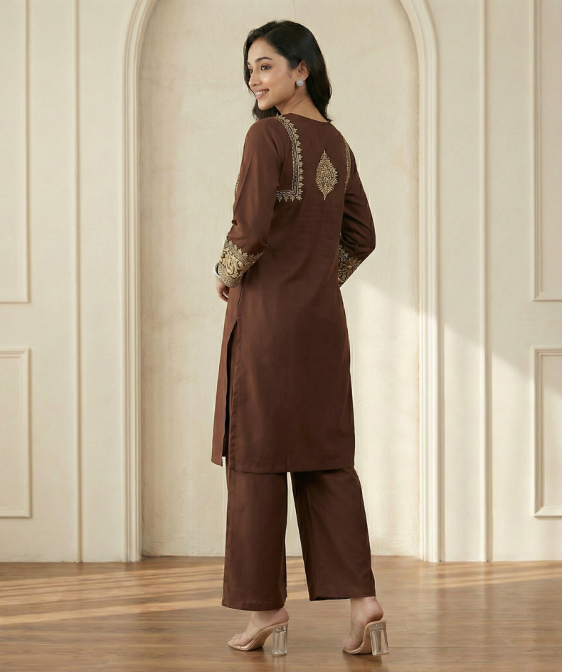 Brown Embroidered Kurta Palazzo Set for Women – Elegant Ethnic Wear
