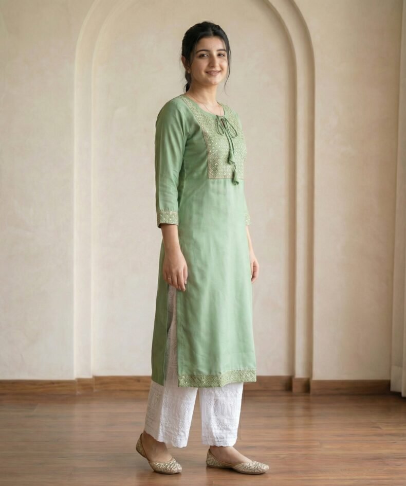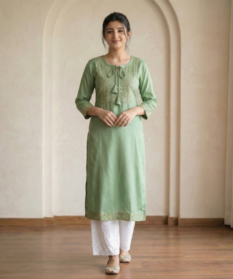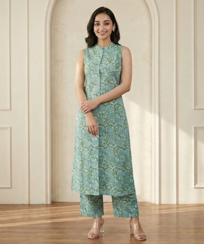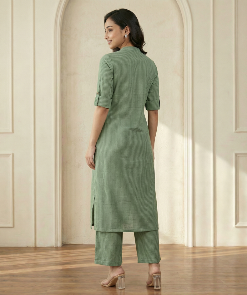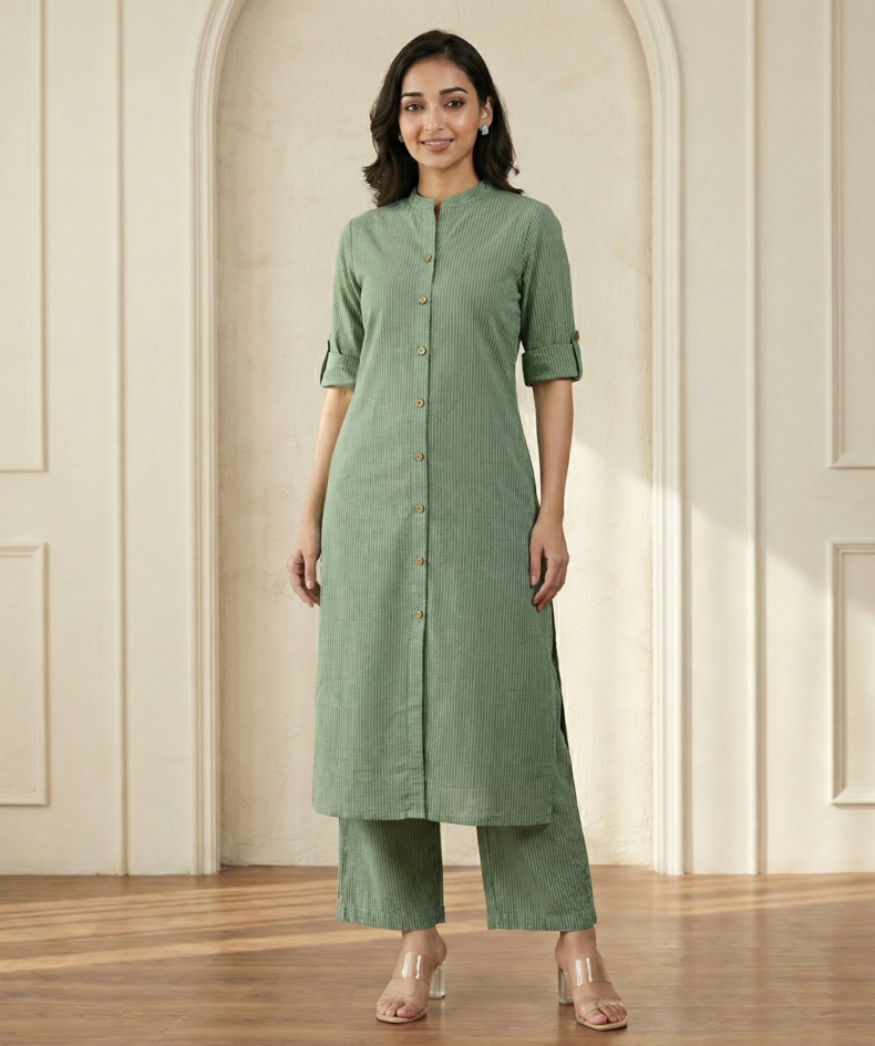 Sage Green Cotton Kurta Pant Set – Elegant Straight Fit Ethnic Wear