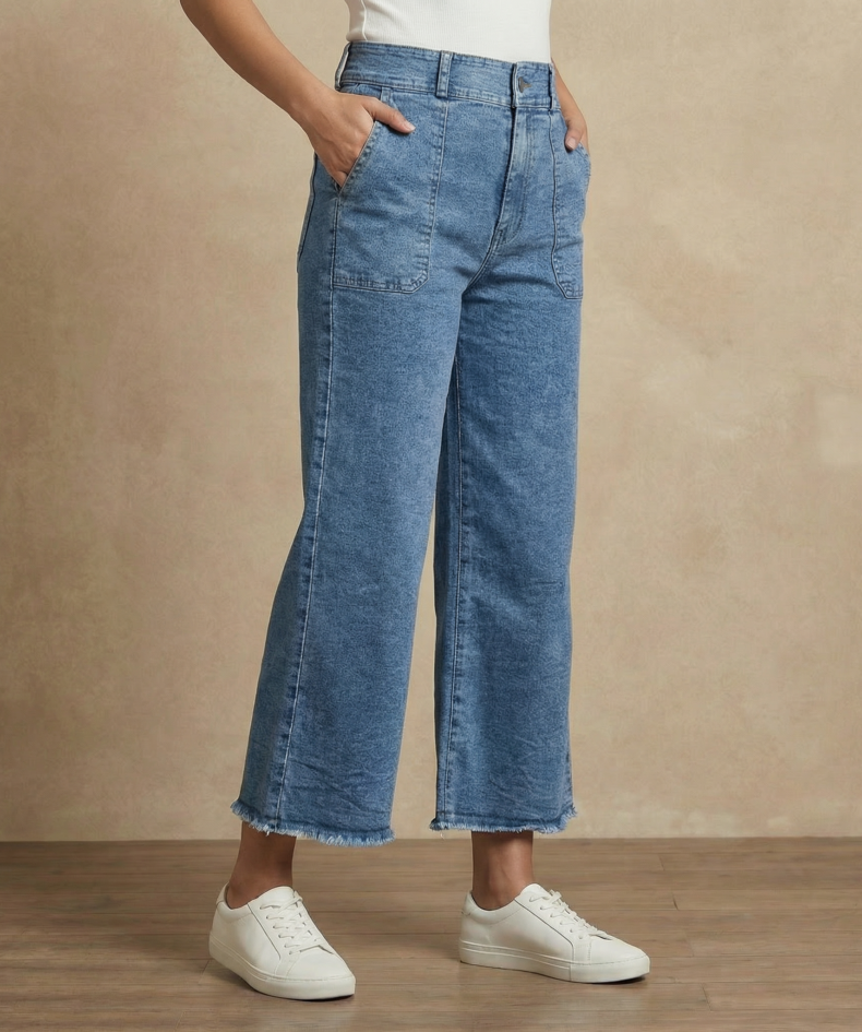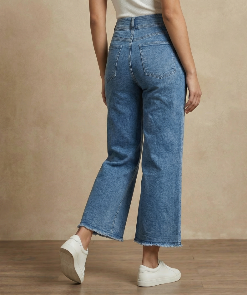 Blue Wide Leg Jeans – High Waist Palazzo Denim Trousers