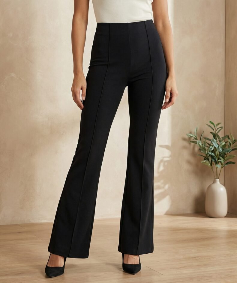 Black High-Waisted Flared Tailored Trousers for Girls and Women