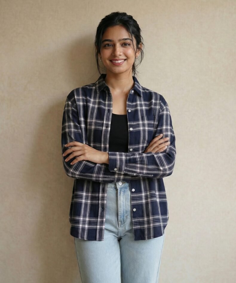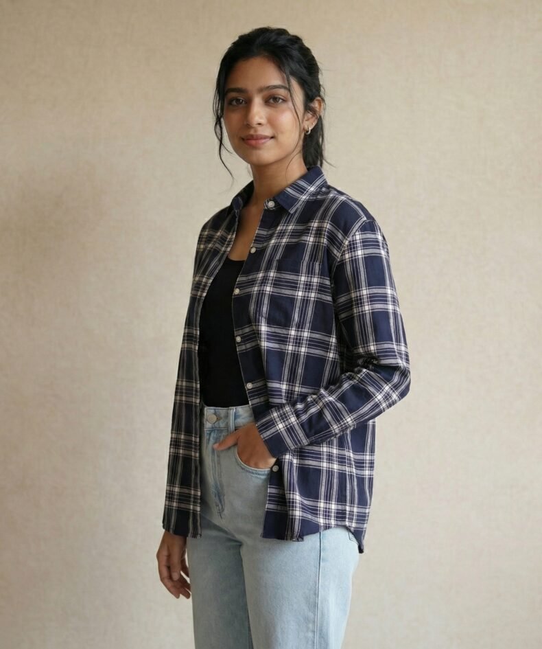 Navy Blue Checked Cotton Casual Shirt