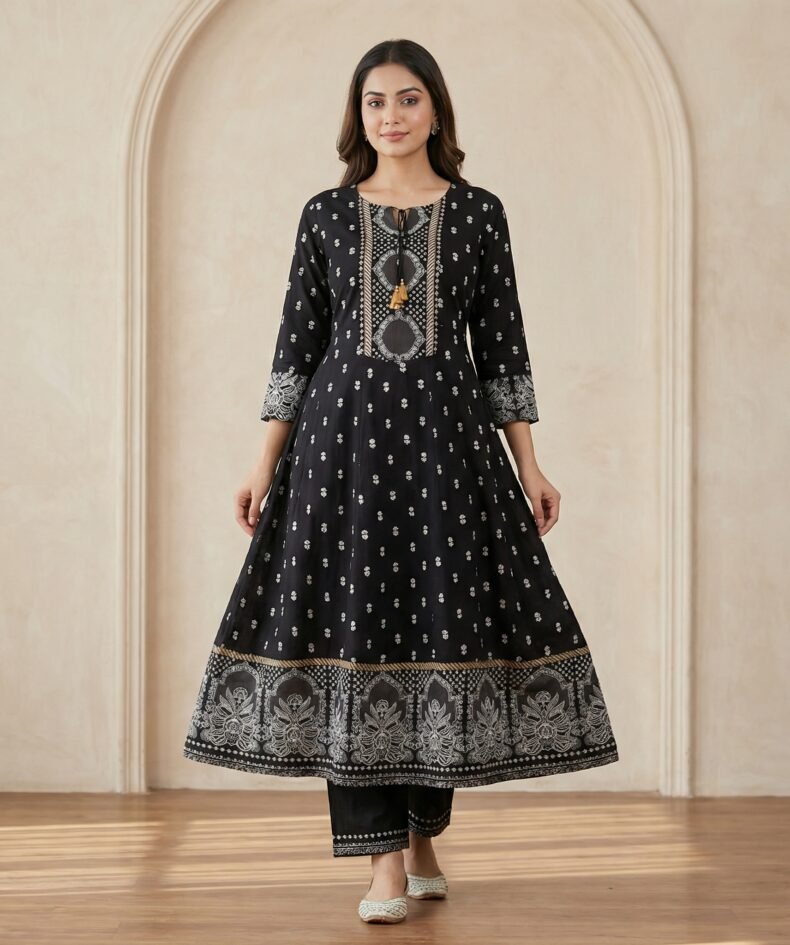 Black Embroidered Anarkali Kurta Set with Dupatta – Ethnic Wear