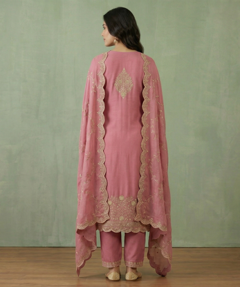 Pink Rayon Embroidered Kurta Set with Dupatta