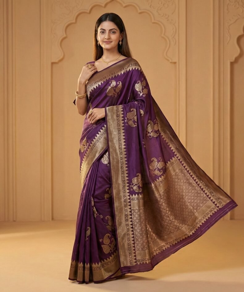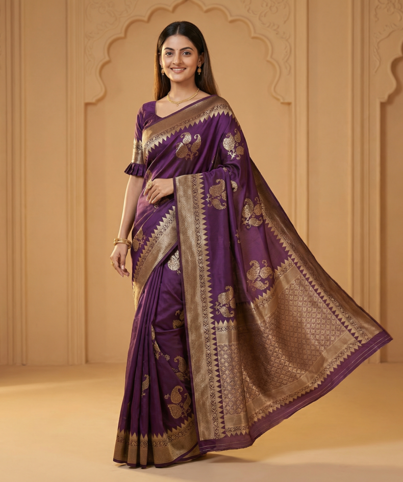 Royal Purple Banarasi Silk Saree with Rich Gold Zari Border