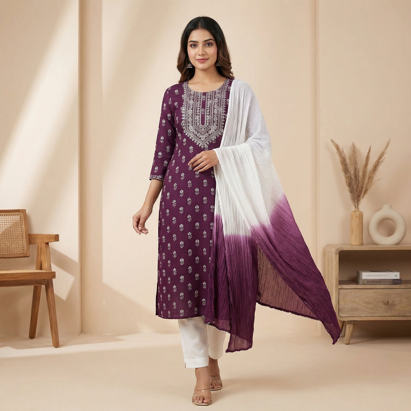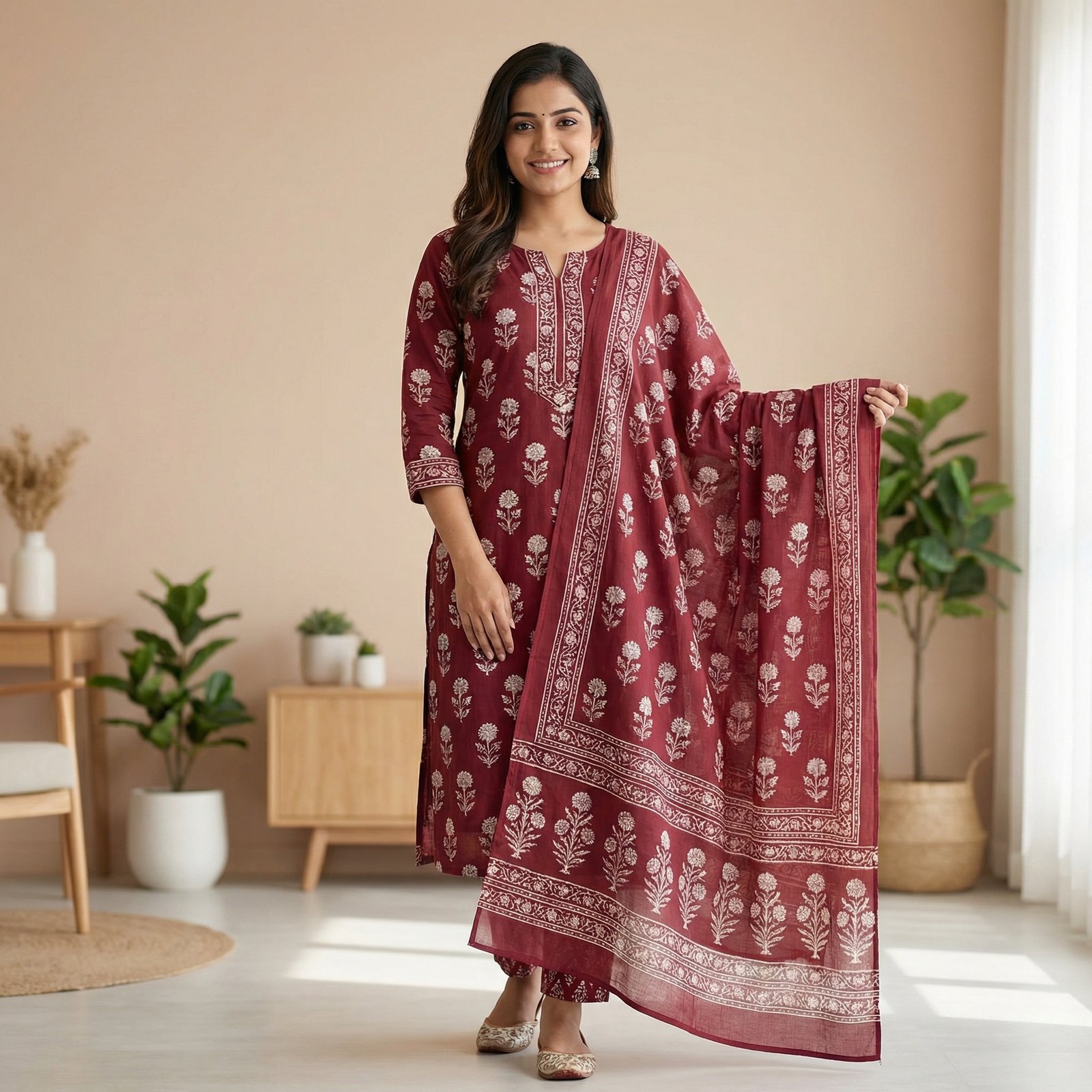 Brick Red Rajasthani Printed Anarkali Kurta Set with Dupatta – Ethnic Flared Festive Wear