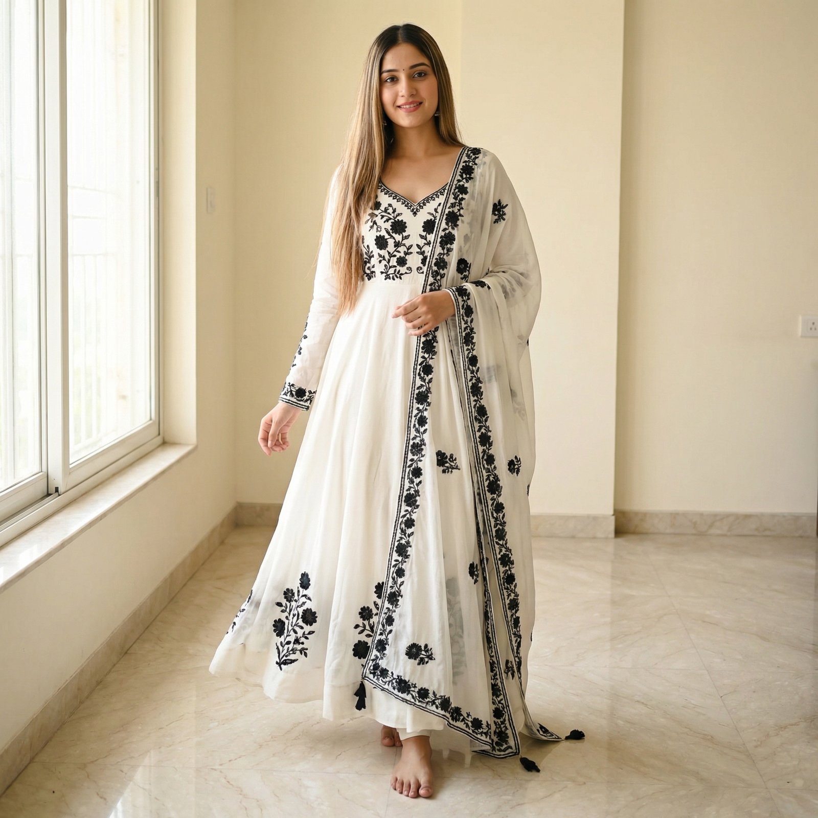 Black Embroidered Anarkali Kurta Set with Dupatta – Ethnic Wear